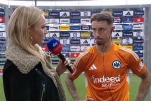 此前不萊梅在德甲慘敗法蘭克福,不萊梅隊(duì)長馬爾科-弗里德爾在賽后與對手換了球衣,隨后在場邊接受了卡塔琳娜的采訪。