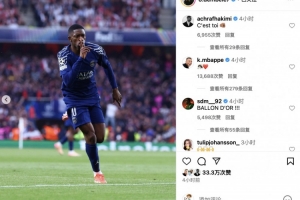 前巴黎隊友姆巴佩第一時間為其送上點贊:????