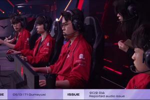體育資訊6月15日訊 LCK MSI資格賽HLE對(duì)陣T1首局兩次暫停,Gumayusi反應(yīng)選手語音出現(xiàn)問題。